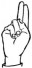На ћирилици написано ВАСОЈЕ ОБУЋИНСКИ састоји се из 15 слова [?]. Исписано ћириличном једноручном азбуком за глувонеме:
